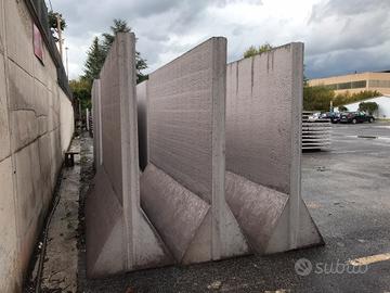 Pareti prefabbricate in calcestruzzo armato ,doppia scarpa di base ,ideali per creare muri di recinzione, di sostegno del terreno, corridoi x contenere insilati , per creare silos verticali , x la divisione di materiale ferroso , alluminio, rame scarti di lavorazione , creare aree indipendenti per rimessaggio.