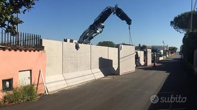 Pareti prefabbricate in calcestruzzo armato , monoscarpa ,ideali per creare muri di recinzione, di sostegno del terreno, corridoi x contenere insilati , per creare silos verticali , x la divisione di materiale ferroso , alluminio, rame scarti di lavorazione ecc.