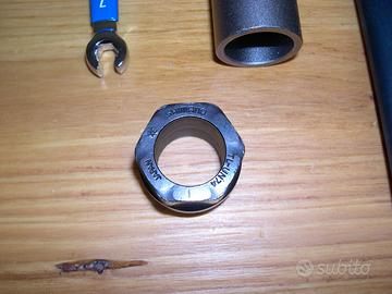Quattro leva copertoni Park Tool usati, un estrattore della Shimano per il movimento centrale, usato una volta, un estrattore movimento centrale VAR nuovo, mod. BP 62100. Per montare e smontare Shimano Hollowtech II. Race Face X-type, FSA Mega-Exo, Truvativ GXP, Sram GXP, Campagnolo e simili con 16 tacche esterne, uno strumento per installare i cuscinetti sterzo, usato una volta, una chiave per raccordi idraulici nuova, tutto come da foto.