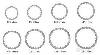 comprende le Bussole sotto indicate ma grazie alla forma particolare possono in realtà operare su 48 titpi di bulloni (vedi anche foto 3)
