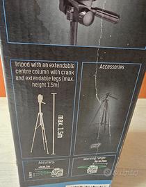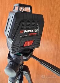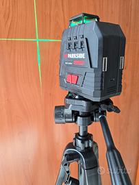 Parkside PKLLP 360 gradi B2 Livella Laser portatile accessori trepiedi. Descrizione: • Laser range: up to 20m • Leveling range: t 3 • Leveling accuracy: t 0.4 mm/m • Projection modes: Self- leveling / Cross lock • Accessories: tripod, charging cable with USB-C connector. • Battery: 4V Li-ion (2.6Ah) . Leveling time: about 4 seconds. • Laser rotante a 360° con proiezione orizzontale panoramica e laser a linee incrociate verticali • Marcatura precisa e simultanea su tutte le pareti della stanza • Per posizionare correttamente mensole, applique, piastrelle, modanature o quadri. • Luce laser verde per una migliore visibilità anche in aree luminose (efficacia luminosa 4 volte superiore rispetto a dispositivi comparabili con un laser rosso) • Molteplici applicazioni grazie a 2 modalità di proiezione: autolivellante, funzione filo a piombo con indicatore luminoso a LED Blocco a croce per la regolazione dell'inclinazione • Custodia compatta con filettatura per treppiede da 6,35 mm (¼") e porta di ricarica. • Treppiede con colonna centrale estensibile a manovella e gambe estensibili (altezza massima 1,5 m) • Forti magneti sul retro della custodia per un facile fissaggio alle superfici metalliche • Lampeggio automatico durante l'autolivellamento al superamento dell'inclinazione iniziale (± 3°) • Testa inclinabile regolabile con livella a bolla d'aria integrata • Laser di classe 2 Spedizione veloce