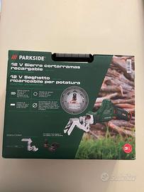 In dotazione: sostegno per ramo, lama HCS, caricabatteria e batteria