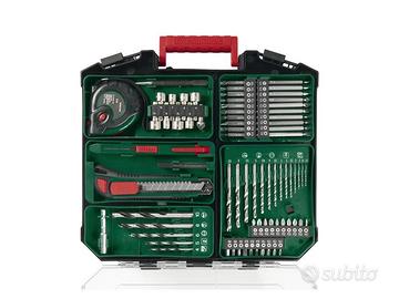 Set di trapano completo che include 2 batterie, 1 caricabatterie e una vasta gamma di accessori