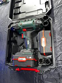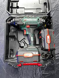 Parkside smontagomme 400 Nm verde. Con 4 bussole Con 1 caricabatterie Con 2 batterie da 4 ampere cadauna. 69 €