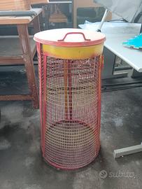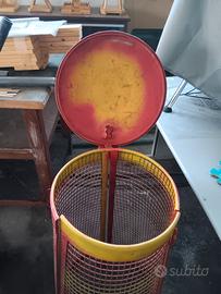 pattumiera da esterno in ferro appena risistemata e riverniciata di rosso e giallo.