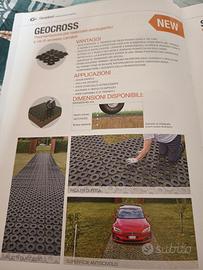 pavimentazione per realizzare corselli e vie di accesso pedonali e carrabili marca geocross levati da un piazzale disponibili interi e con staccature venduto al mq , per quelli interi alla metà del prezzo per quelli con difetti ad un quarto del prezzo . sostituiscono la betonella e non c è bisogno del getto sono permeabili