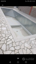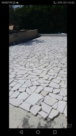Pavimento a mosaico in pietra di Trani burattata, spessore 3 cm, ideale per ambienti esterni. Prezzo 10 € al mq, iva e trasporto esclusi.