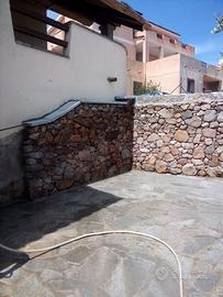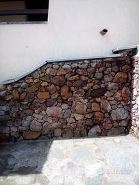 Fornitura e messa in opera di pavimentazione in granito basolato e muretti in pietra grezza.