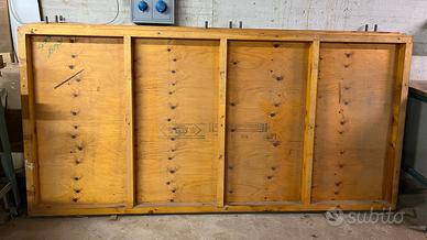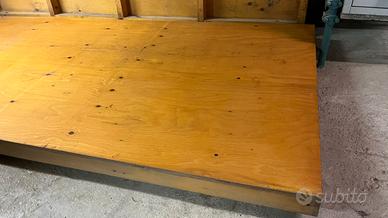 Pavimento in legno costituito da 2 tavole montabili ad incastro, vedi foto. Misure di 1 Tavola: Lunghezza 243,5 cm, Larghezza 117 cm, Altezza 8,5 cm , spessore tavola (senza i travetti ) 2cm.