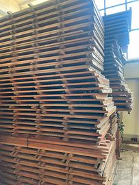Pavimento in legno per allestimenti, feste, tendoni, pagode, aree evento, non necessita di sottofondi in acciaio si appoggia direttamente sul terreno, i moduli (per lo più da 4 mt x 80 cm) si incastrano facilmente l'uno con l'altro per fornire una superficie liscia e calpestabile, per fiere, capannoni feste, aree ballo etc. Disponibili circa 450 mq. con ritiro a Ornavasso (Verbania) - Usato poco e conservato sempre al coperto. Prezzo al mq. euro 14,00