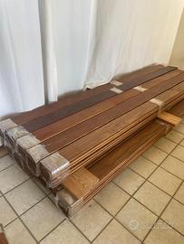 Vendo listoni di legno tek nuovi Misure L 200 x10 sp. 2 cm. N 70 circa piu ‘diversi tagli più piccoli Costo al mq 60€