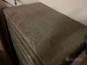 20 lastre di camminamento dimensione 60x90cm (altezza variabile di 2-3cm) in sasso naturale. Colore grigio. Bordi martellati. Acquisto singola lastra: 18eur Acquisto intero stock: 300 eur
