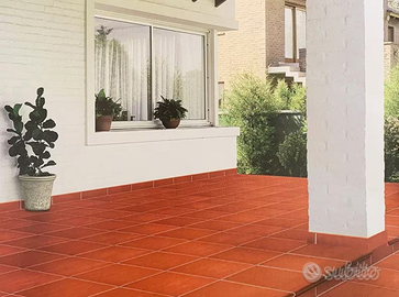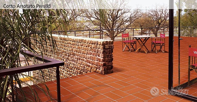 Pavimenti in vero cotto arrotato, presente in tre superfici differenti: Naturale (R10), Presild (R12) e Trattato Cerato per interni (R9).