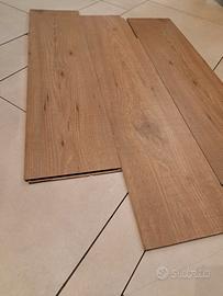 Pavimento laminato, effetto legno tipo Rovere con incastro click , USATO posato flottante, ideale per usi civili. Adatto anche per posa su pavimenti già esistenti. (vedi foto).