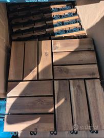 Pavimento per esterno in legno misure 32x32 vero legno resistente all'acqua, con incastro in plastica 2 pacchi disponibili da 33 piastrelle, per un totale di 66 PZ. Prezzo riferito al singolo pacco oggetto nuovo mai montato