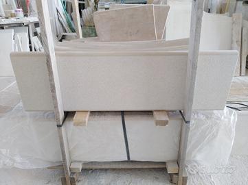 Bordo piscina in pietra Apricena bocciardata antiscivolo da cm 3 di spessore larghezza 20/25 cm a correre in varie lunghezze. Lavorazione mezzo toro sul lato interno della piscina e bisellatura sul lato esterno. Pavimento burattato per area piscina a mosaico da 3 cm di spessore. Prezzo del bordo piscina a partire da 25 euro al metro lineare Iva esclusa, prezzo del pavimento a mosaico 10 euro al mq. Trasporto disponibile da concordare il costo con il corriere.