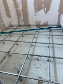 Pavimento soprelevato, marca HiRoss, diponibilr circa 40mq, compresa struttura in ferro zincato,piastrelle, e paiatrelle di copertira in linoleum. Il paviemnto è stato rimosso per trasloco in nuova sede, la supericie delle piastrelle presenta residui di colla. Materiale gia su bancale. Pronto per il ritiro