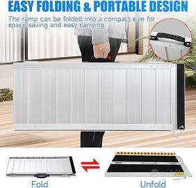 Pedana da carico portatile in acciaio con fondo antiscivolo e segnaletiche di sicurezza richiudibile pari al nuovo