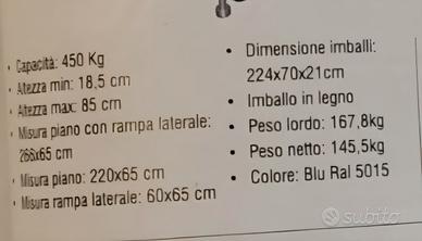 pedana solleva moto fino a 450kg. dettagli nelle foto. usata davvero poco, dalle foto si vede. ritiro a carico dell'acquirente.