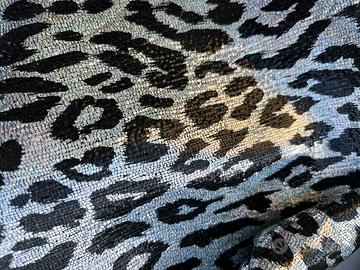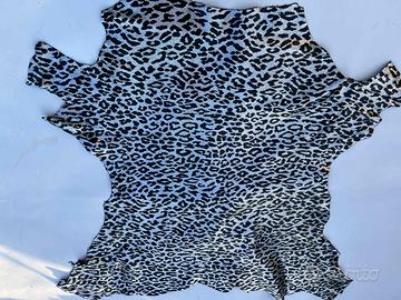 Pellame ovino laminato effetto maculato argento e nero, per progetti di pelletteria e calzatura, pelle morbida per realizzare borse, scarpe e molto altro.