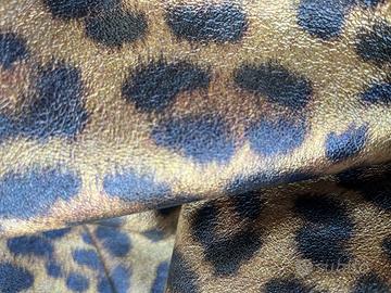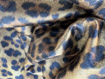 Pellame di vitello maculato laminato leopardo multicolore, mano morbida e pastosa utilizzabile nel settore della pelletteria, calzatura, legatoria e molto altro.