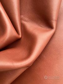 Pellame liscio di vitello colore brandy, mano morbida e pastosa, pieno fiore anilina pura di botte, senza nessuna correzione in rifinizione, segni e imperfezioni non sono da considerarsi difetti, ma caratteristiche naturali, pellame da pelletteria, calzatura, legatoria e molto altro.