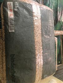 Vendita prestagionale pellet Binderholz, 100% abete austriaco, alto potere calorifico 5,2 Kwh, basso contenuto di ceneri 0,3%, certificato Enplus A1 AT 001, bancale da 70 sacchi da kg 15 € 475,00 IVA inclusa ( € 6,79 al sacco), compreso di trasporto presso il vostro domicilio nel raggio di 15 Km dalla nostra sede. Offerta valida fino ad esaurimento scorte. No spedizione