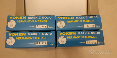Vendo N. 44 Marcatori / Pennarelli indelebili colore Blue marca YOKEN Mark II N. 10 made in Japan.