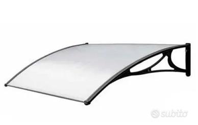 Pensilina con braccetti in ABS rinforzati colore nero. Profili in alluminio sul fronte ed il retro. Copertura in policarbonato alveolare satinato opalino (lastra copertura bianca).