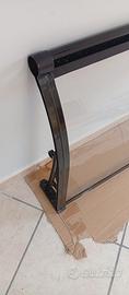 pensilina con struttura in alluminio e pannelli in policarbonato inseriti in doppio telaio con guarnizioni, misura 180*60 cm., già montata.