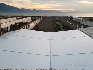 Le nostre coperture possono essere personalizzate con l'aggiunta di teli laterali per gazebo aventi diversi tipi di finestre e aperture, possono essere assemblati e uniti l'uno con l'altro con apposite grondaie.