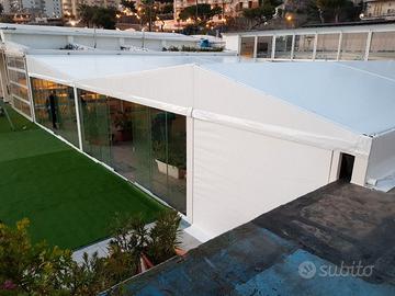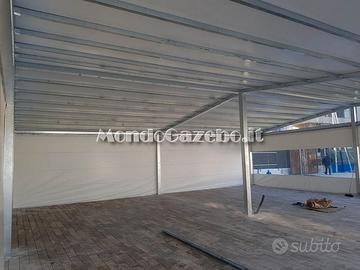 Le nostre coperture possono essere personalizzate con l'aggiunta di teli laterali per gazebo aventi diversi tipi di finestre e aperture, possono essere assemblati e uniti l'uno con l'altro con apposite grondaie.