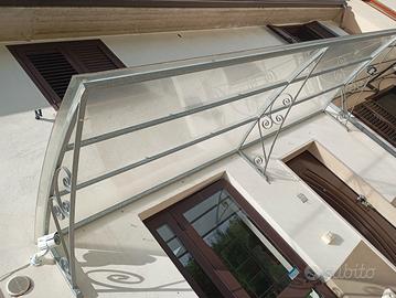 Pensilina in plexiglass con struttura in ferro zincato. Misure 4.70 m x 1.70 m