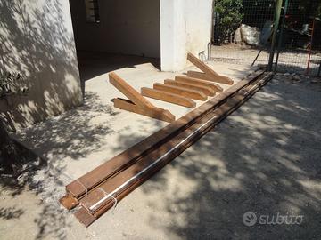 Vendesi a prezzo di costo elementi di pensilina (2 capriate + 4 elementi) cm 10 x cm 12 x cm 100 con assito in legno nuovo (n. 8 x 5 metri, spessore cm 2, x cm 13 di larghezza), mai usate, che può coprire una larghezza max 5 metri per 1 metro di larghezza. Prezzo 1.200,00 con ritiro nel Comune di Forlì. Chiamare Verbano 3479876824