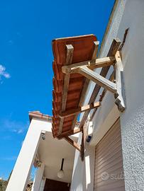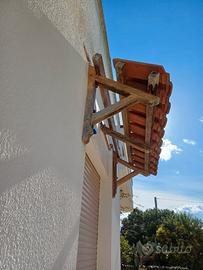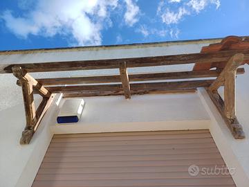 Caratteristica Pensilina in ulivo massiccio con staffe 6,5x7 e travi 5x6, foto in fase di smontaggio per rinnovo facciata, e in ottimo stato (necessita al massimo solo di una nuova verniciatura) misure metri 2 larga e 80 profonda per copertura con due file di tegole