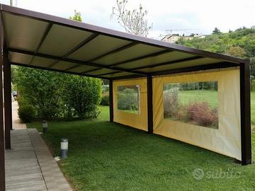 Le nostre coperture possono essere personalizzate con l'aggiunta di teli laterali per gazebo aventi diversi tipi di finestre e aperture, possono essere assemblati e uniti l'uno con l'altro con apposite grondaie.
