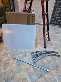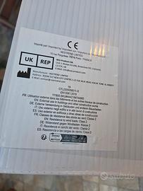 Nuovo mai usato. Scatola aperta per controllo. 2 supporti grigi, 1 pannello in Policarbonato alveolare trasparente e viti per il montaggio come da foto