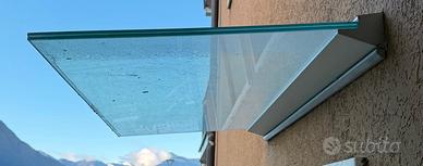 Pensilina in vetro temperato con guida di sostegno in alluminio 70 x 120 cm Pagata 850 + Iva Prezzo 450 euro Ritiro a Pisogne