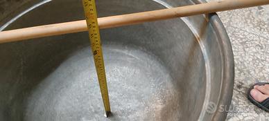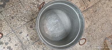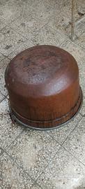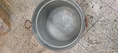 Pentolone in rame 59cm di diametro x 37cm di altezza,stagnato, con sotto bordo rinforzato con tondino in acciaio inox come da foto.