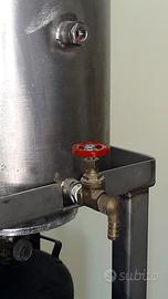 Pentolone in acciaio per birra artigianale completo di sonda per termometro e filtro.