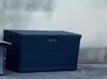Ombrellone laterale due poltrene compreso cuscineria, tavolino, due cassa panche da giardino in pvc , circa 2,5mq piastrelle in legno ad incastro e circa 12 mq di prato verde sintetico da cm 1,5