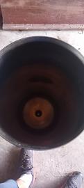 L'oggetto nell'immagine è un filtro housing o percolatore in acciaio inox, utilizzato per la filtrazione o estrazione di liquidi in vari contesti.