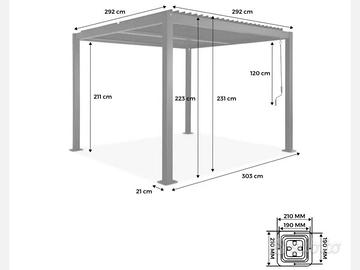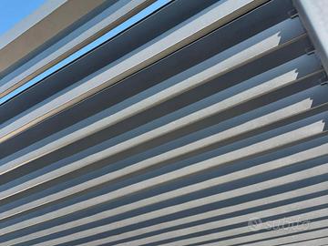 PERGOLA 3X3 USATA PER NOLEGGI Mod. Garda Disponibili dal 27/04/26 Disp. 4 pz. € 600,00 Cad. MATERIALI: - ACCIAIO GALVANIZZATO VERNICIATO A POLVERE (POLIESTERE) - PALI PORTANTI 80X80MM, TRAVERSI 130X50MM - TETTO LAMELLARE IMPERMEABILE ORIENTABILE TRAMITE MANOVELLA - LAME FRANGISOLE 172. 3X30MM - SISTEMA DI DEFLUSSO DELL'ACQUA INTEGRATO ALL'INTERNO DEI PALI PORTANTI - VITERIA IN ACCIAIO INOSSIDABILE DA ASSEMBLARE (senza scatola) Ritiro presso il nostro Showroom - Disponibile a spedizione a carico dell'acquirente (costo variabile in base alla distanza)