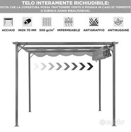 Pergola in metallo con telo impermeabile richiudibile. Acquistata e mai montata.
