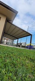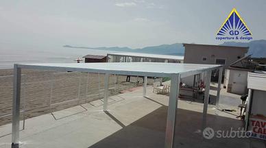 Pergola in acciaio zincato 6x6 , non è verniciata,per verniciatura solo a richiesta con maggiorazione di costo, la struttura è zincata a caldo come la 4 foto, telo in pvc ignifugo fisso non apribile, gronda incorporata, deflusso acque nei piantoni. Pesa oltre 600 kg , i piantoni sono 150x150x3 , altezza 330 e 250 cm , assolutamente nuova, prezzo escluso I.. v..a.. ,escluso trasporto, franco nostra sede a Capua prov. Di Caserta...per maggiori informazioni lasciare un recapito per contatti .