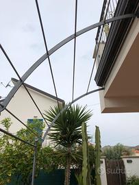 Vendo, per ristrutturazione prospetto, splendida Pergola Addossata (in pieno ferro battuto) manifattura artigianale. Modello ispirato alla “Pergola Solaire” del catalogo arredamenti da giardino UNOPIU”. Completa di teli (artigianali) Misure: altezza massima mt. 3,20 altezza minima mt.2,30 larghezza mt. 5,10. Consegna a mano.