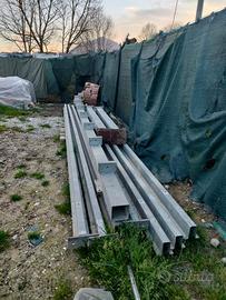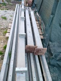 vendo struttura pergola addossata al muro cosi composta n 2 piantoni da 2.20 metri n 1 trave portante da 6 metri e n 7 travetti da 5 metri già smontato