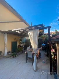 Pergola addossata in legno con tenda retraibile a molla misure 4x4 altezza 250