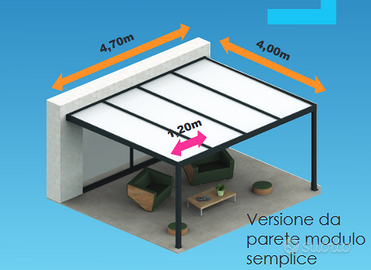 Bellissima pergola addossata modello Top Lucy con pannelli sandwich fissi di 32mm di spessore