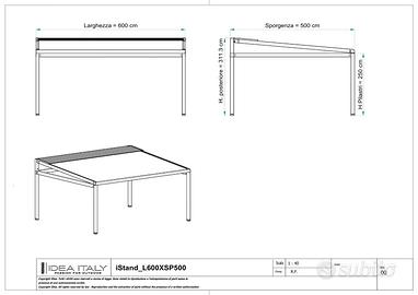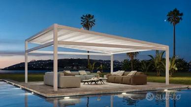 Vendo pergola NUOVA grandi dimensioni in alluminio, autoportante con tetto diagonale apribile motorizzato con telecomando, ISTAND IDEAITALY mai uscita dal magazzino, dimensionI Larghezza 537 cm Sporgenza 630 cm design contemporaneo e minimalista. Color Verde 6005 MAT COL. TUBI Verde 6005 MAT TESS. Opatex Pro 300 COL. TESS. 272 Champagne / Champagne, staffe a muro con decori mod. AIR*